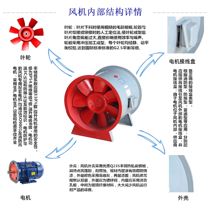 一、軸流消防排煙風機的電機潤滑油脂質量不良,變質,或填充過多和含有灰塵,粘砂,污垢等雜質而影響軸承所引起的電機發熱。這就提醒我們在日常使用時做好軸流消防排煙風機的清潔工作。這里溫馨提示大家,在使用軸流消防排煙風機時,一定要按照使用說明進行合理的使用,不然會嚴重影響軸流消防排煙風機的使用壽命。